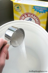 Measure out and pour 1/2 cup of Baking Soda into the water/washing soda mixture, and stir well to dissolve.